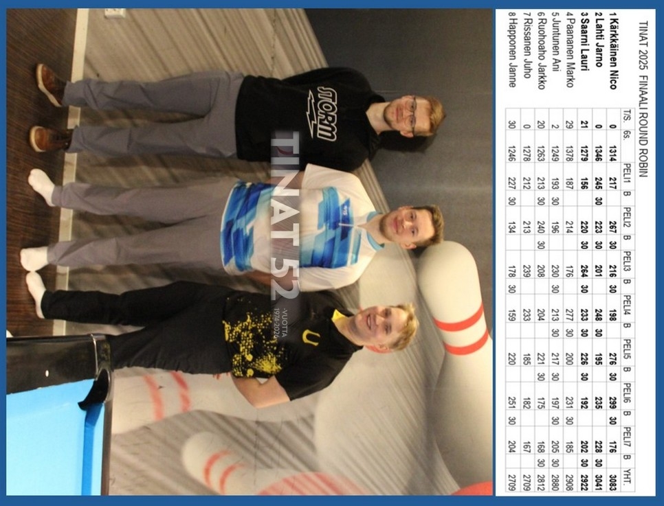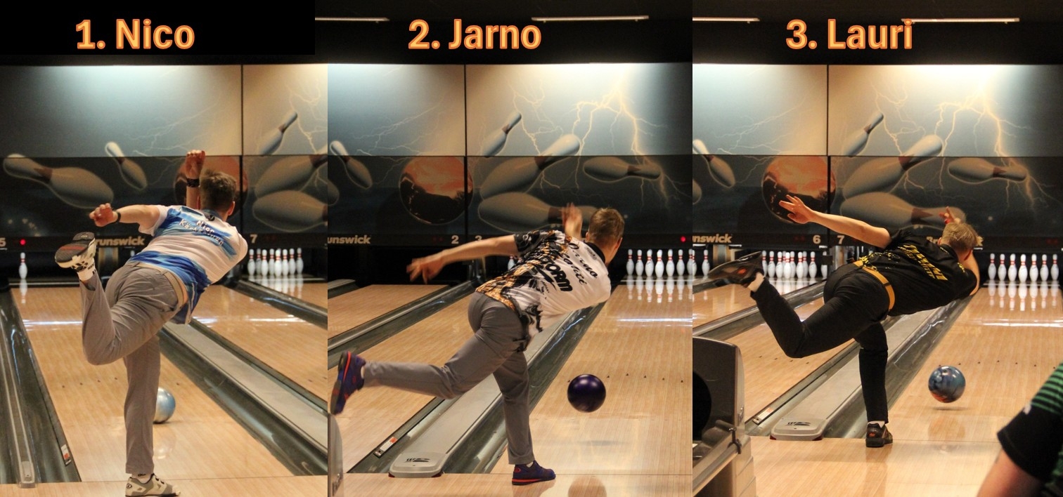 Finaalissa keilasi 17 keilaajaa ja palkinnoksi kuudelle parhalle jaettiin euroja. Onnittelut menestyneille! Alla tulokset ja kuvassa kisan kolme kärkimiestä. Rvaari