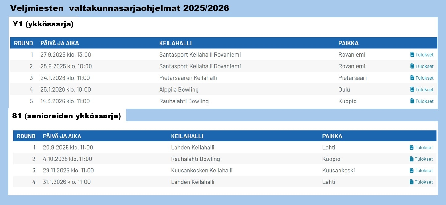 Veljmiehet pelaa kaudella ykkössarjaa sekä yleisessä että senioreiden luokassa. Sarjapeliohjelmat alla.